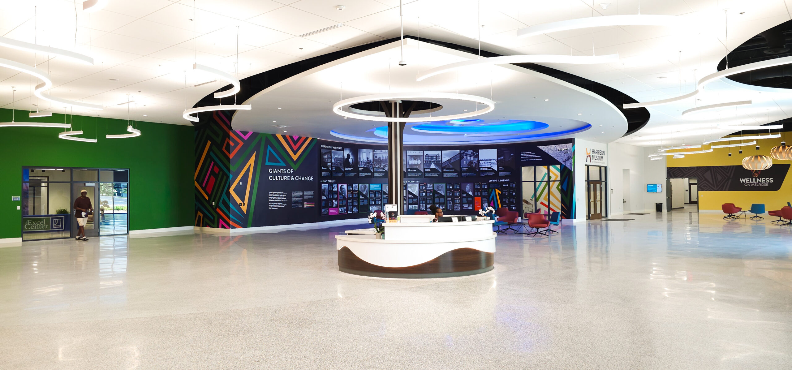 Goodwill Industries of the Valley hired Enteros Design to transform a 89,000 sf building occupied with offices and warehouse storage into a vibrant community hub. Anchored by the Melrose Library on one end, Melrose Plaza now includes a grocery store, bank, wellness center, adult high school, exhibit space, and child-watch areas. This large-scale multi-purpose center will be an important resource for this vibrant but under-served community.