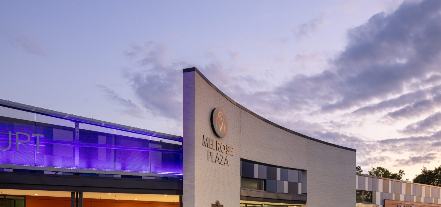 Melrose Plaza is designed to be meaningful to the community and showcases artwork and graphic installations by local artists.