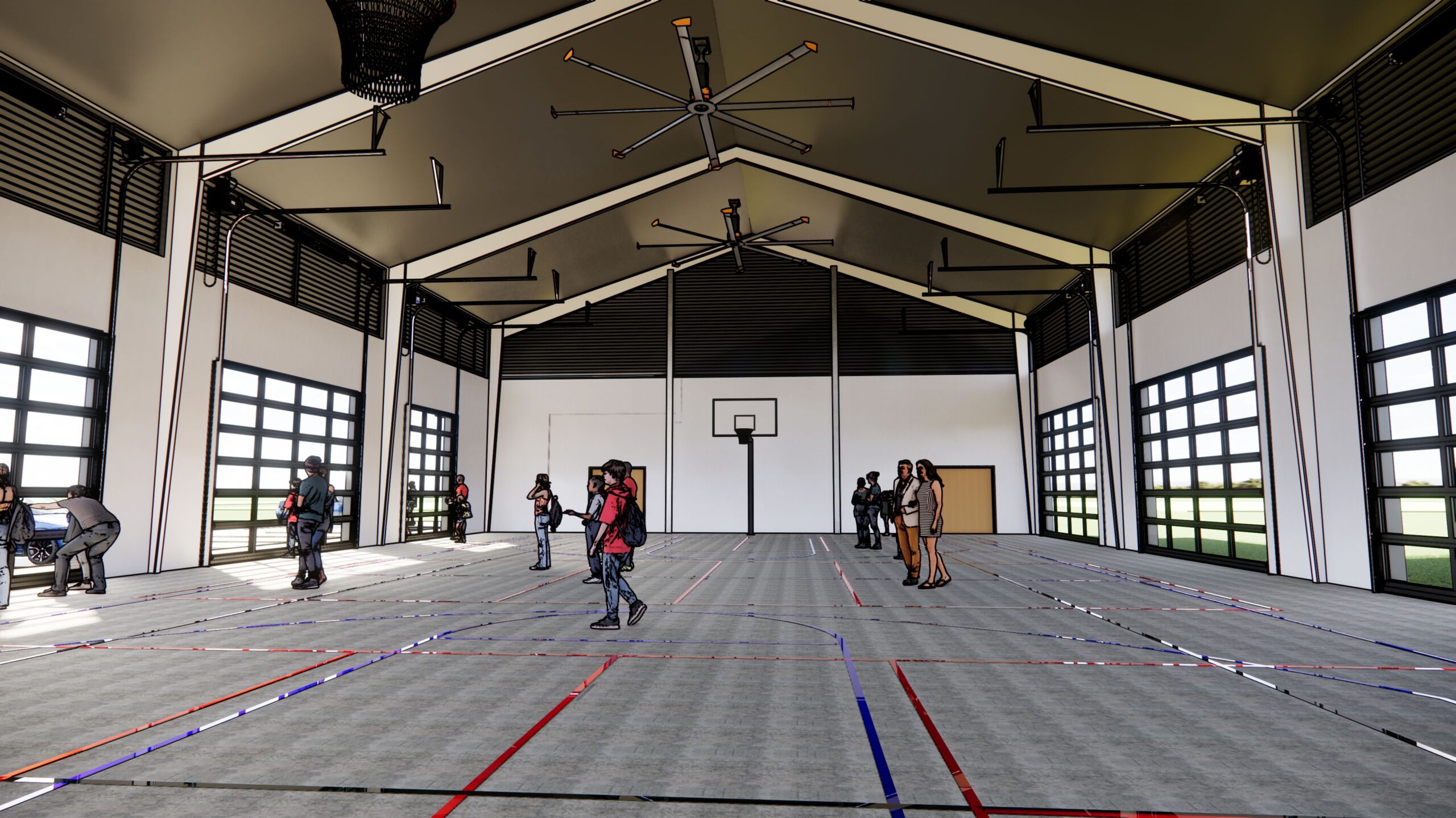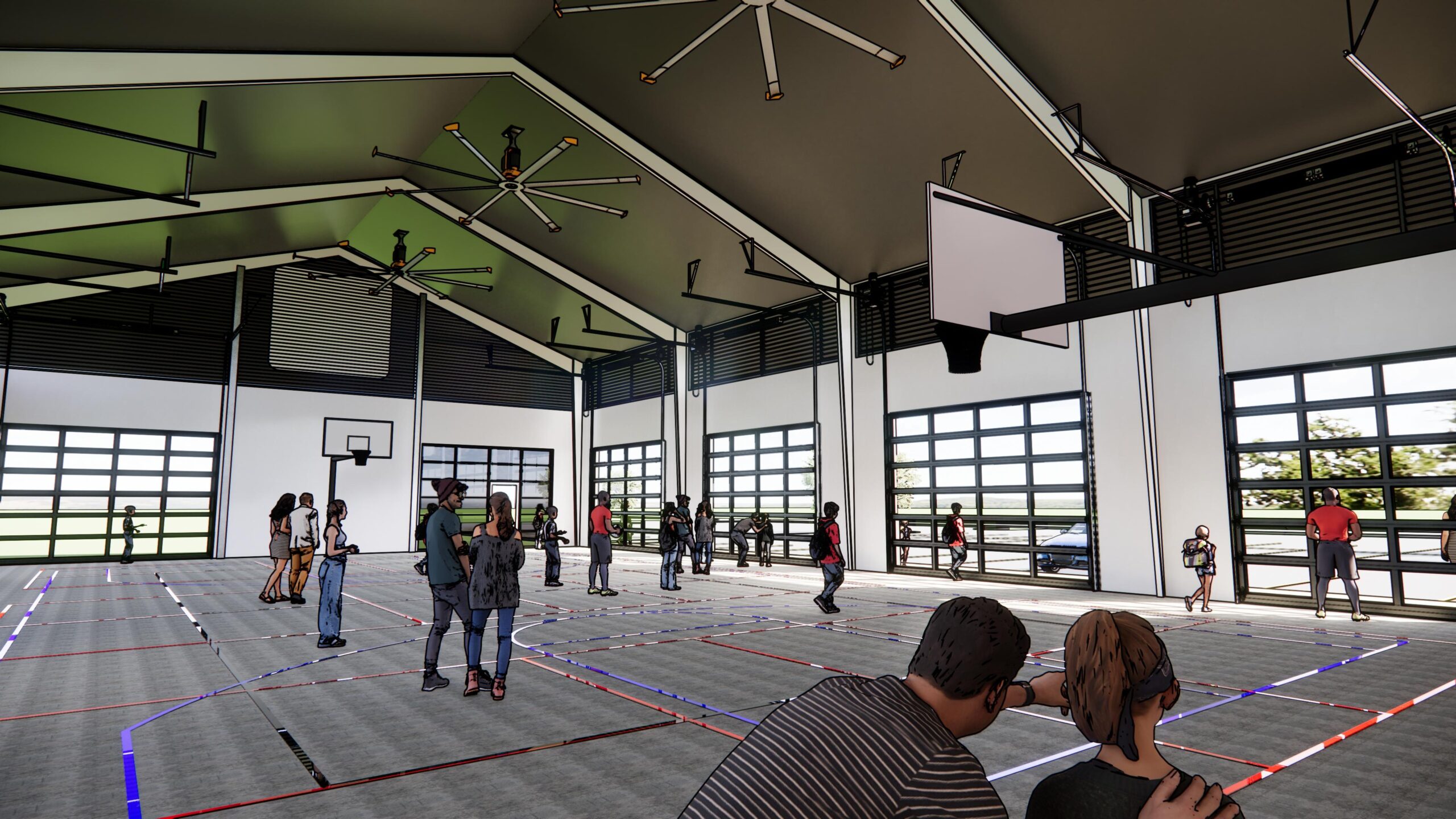 The prototype was designed with adaptability in mind so it can be replicated and erected at multiple YMCA facilities throughout the region. Its structure offers shade and protection from the elements while maintaining natural ventilation and a strong connection to the outdoors. This design not only reduces operating costs compared to fully enclosed facilities but also promotes year-round engagement in active, healthy lifestyles.